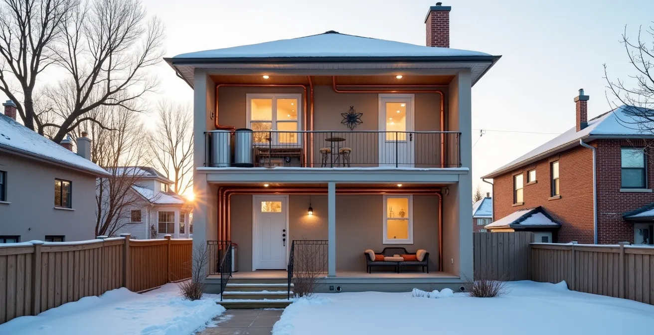 Chaque hiver à Montréal, des centaines de propriétaires font face à des dégâts d’eau causés par un phénomène aussi simple que dévastateur : le gel des tuyaux. L’erreur fondamentale se commet à l’automne, par simple oubli. Lorsqu’on néglige de purger correctement un robinet extérieur, l’eau emprisonnée dans la canalisation gèle. En se solidifiant, l’eau prend de l’expansion (environ 9% de son volume), exerçant une pression immense, pouvant atteindre des milliers de livres par pouce carré. Cette force est largement suffisante pour faire éclater le tuyau en cuivre, même à l’intérieur du mur chaud de la maison.